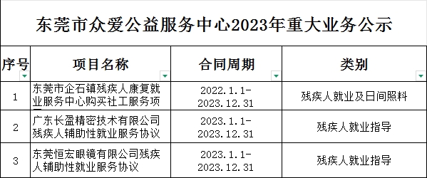 东莞市众爱公益服务中心2023年重大业务公示