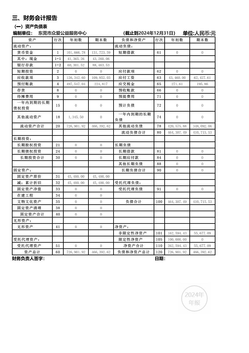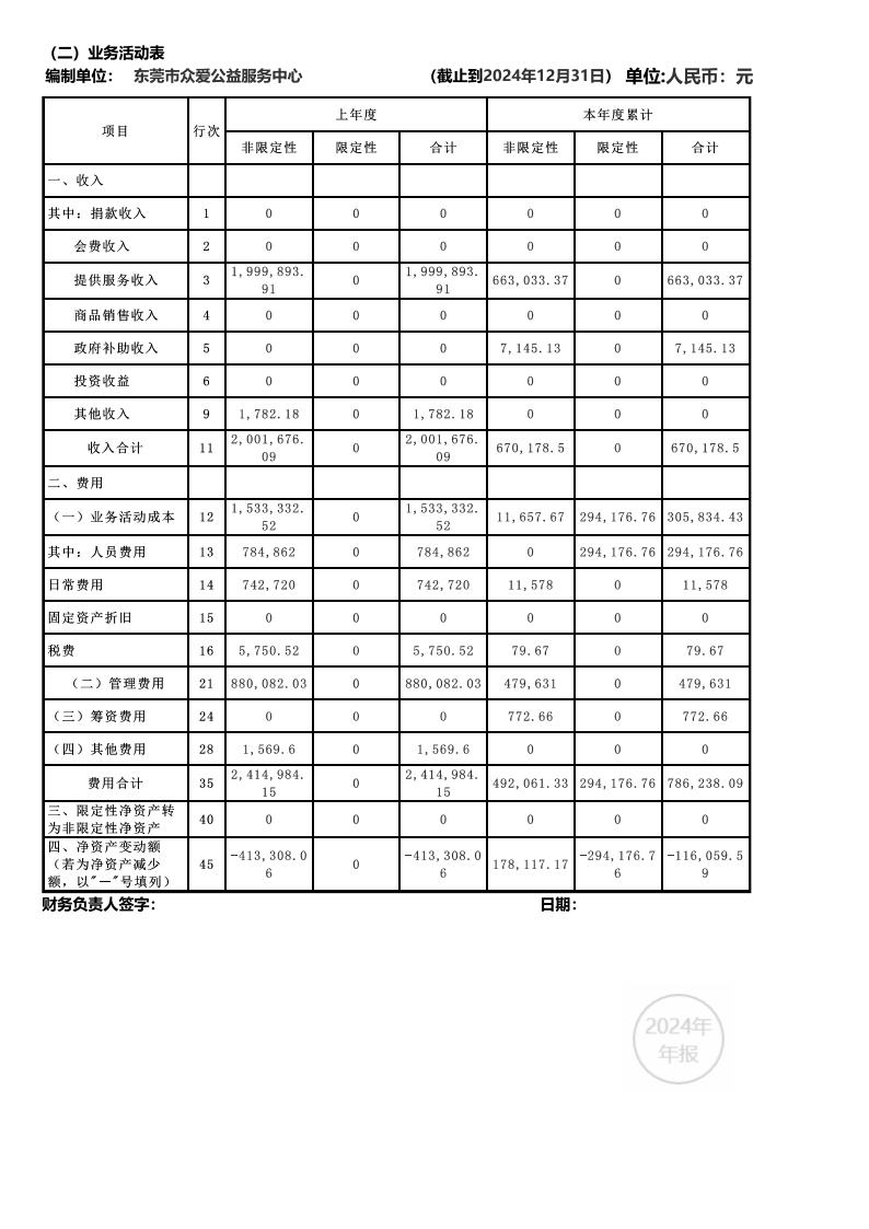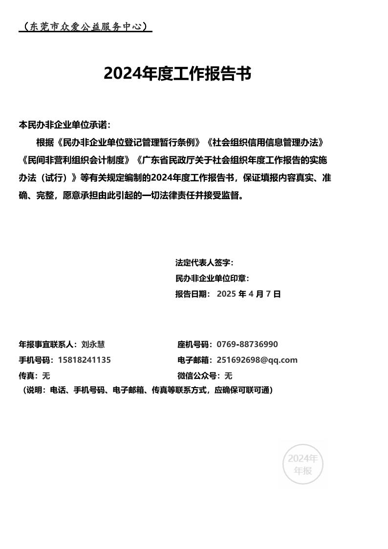 东莞市众爱公益服务中心2024年年度报告公示