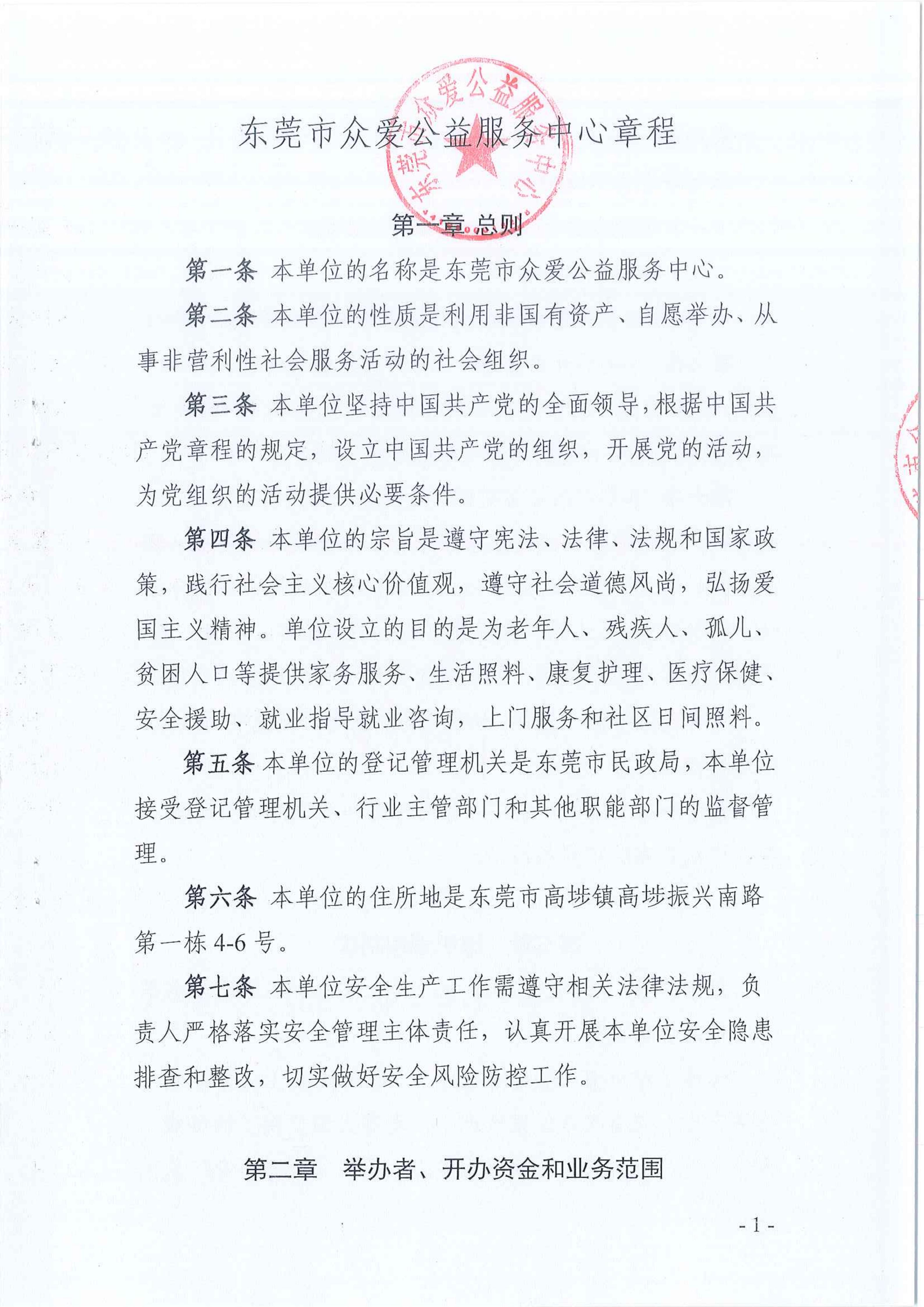 东莞市众爱公益服务中心章程