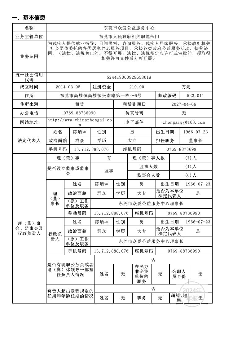 东莞市众爱公益服务中心2024年年度报告公示
